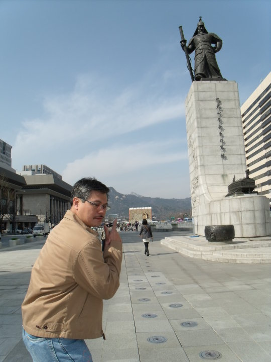 And of course this great shot of my dad (mimicking Lee Byung Hee of IRIS) in front of Lee Sun Sin. Rocking the gun out!!!